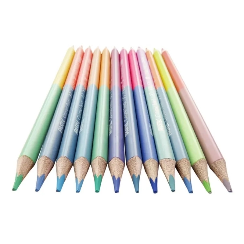 Kredki ołówkowe trójkątne dwustronne pastelowe, 12 szt./24 kolory (312120003)