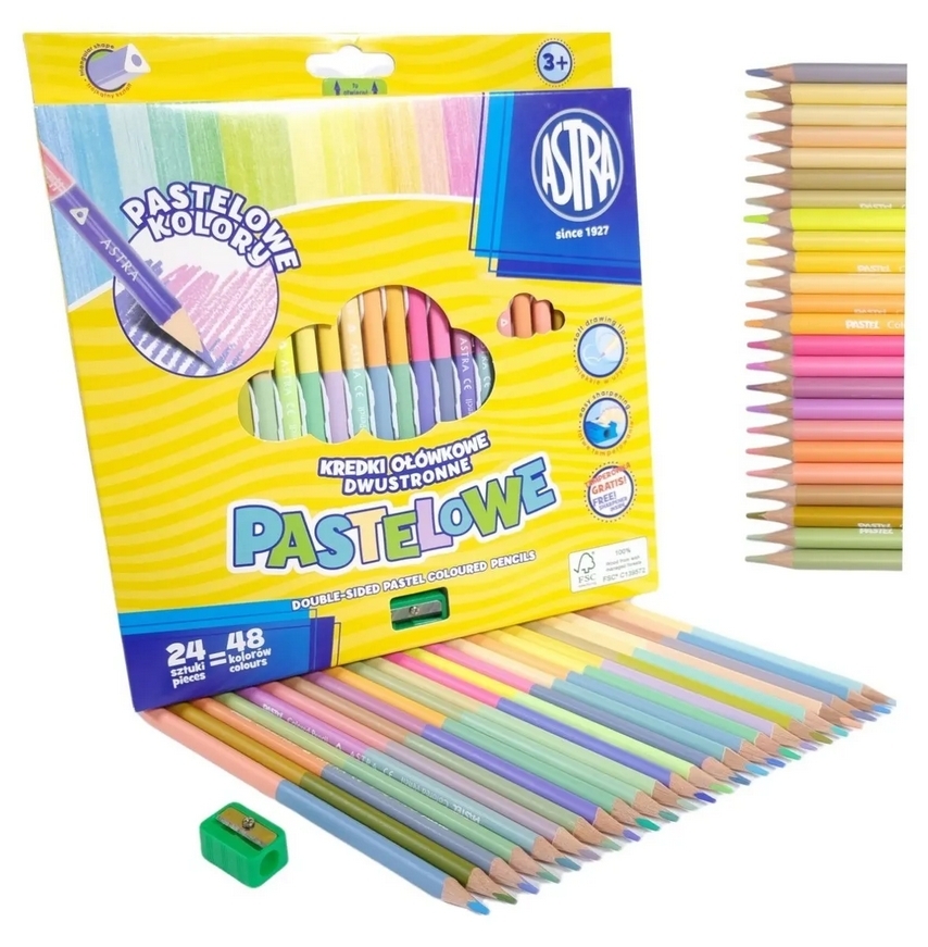 Kredki ołówkowe trójkątne dwustronne pastelowe, 24 szt./48 kolorów (312120005)