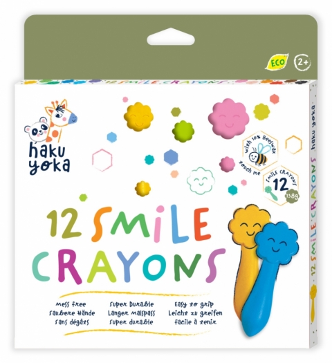 - Dzięki specjalnej powierzchni i kształtowi kredki Haku Yoka zapewniają maluchom wygodny i pewny chwyt.