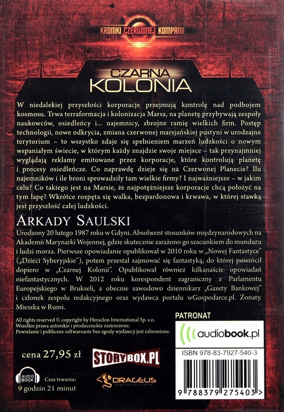 Niesamowite możliwości planety przyspieszają kolonizację, na Marsie powstaje nowy, wspaniały świat, świat, w którym każdy znajdzie swoje miejsce – tak przynajmniej wyglądają reklamy emitowane przez korporacje, które kontrolują planetę i procesy osiedleńcze.Co naprawdę dzieje się na Czerwonej Planecie? Ilu najemników i ile broni sprowadziły tam wielkie firmy? I najważniejsze – w jakim celu? Co takiego jest na Marsie, że najpotężniejsze korporacje chcą położyć na tym łapę?