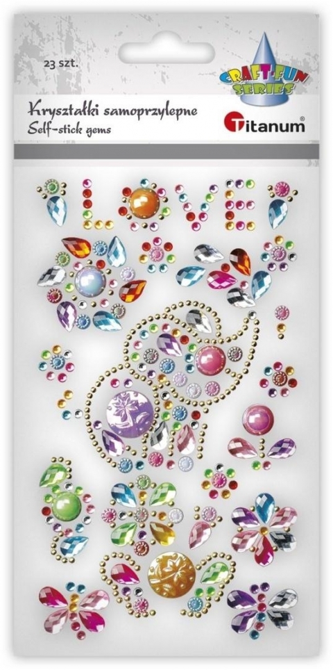 Kryształki samoprzylepne słoń, napis LOVE, dekory mix rozmiarów i wzorów 22szt.