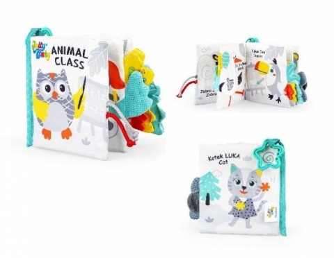 Prawdziwa gratka dla bobasa materiałowa książeczka wypełniona po brzegi bystrymi zwierzaczkami! Znajdziemy tu szeleszczącą okładkę i nazwy zwierzątek w dwóch językach polskim oraz angielskim. Na małych odrywców czeka sensoryczna niespodzianka! Z poszczególnych stron książeczki wystają materiałowe elementy, różniące się kolorem i fakturą, a wszystko to, aby jak najlepiej stymulować zmysły malucha. Praktyczna zawieszka pozwoli przymocować książeczkę w dowolnym miejscu.