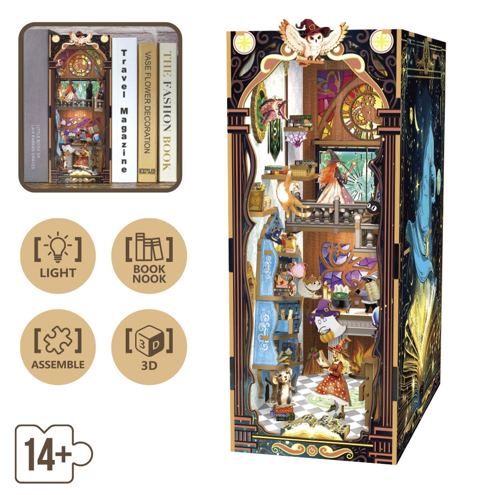 Drewniany 3D książkowy zakątek DIY – magiczny domek BOOK NOOK