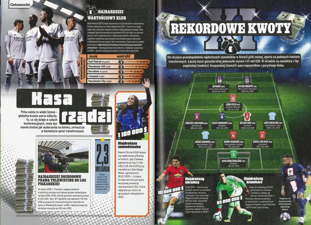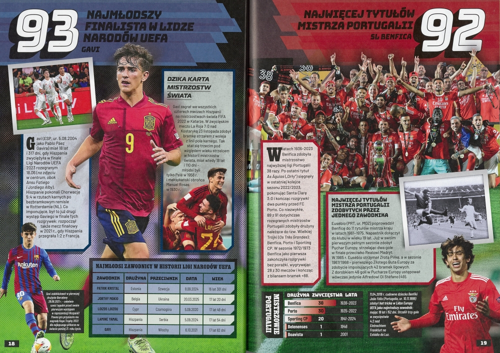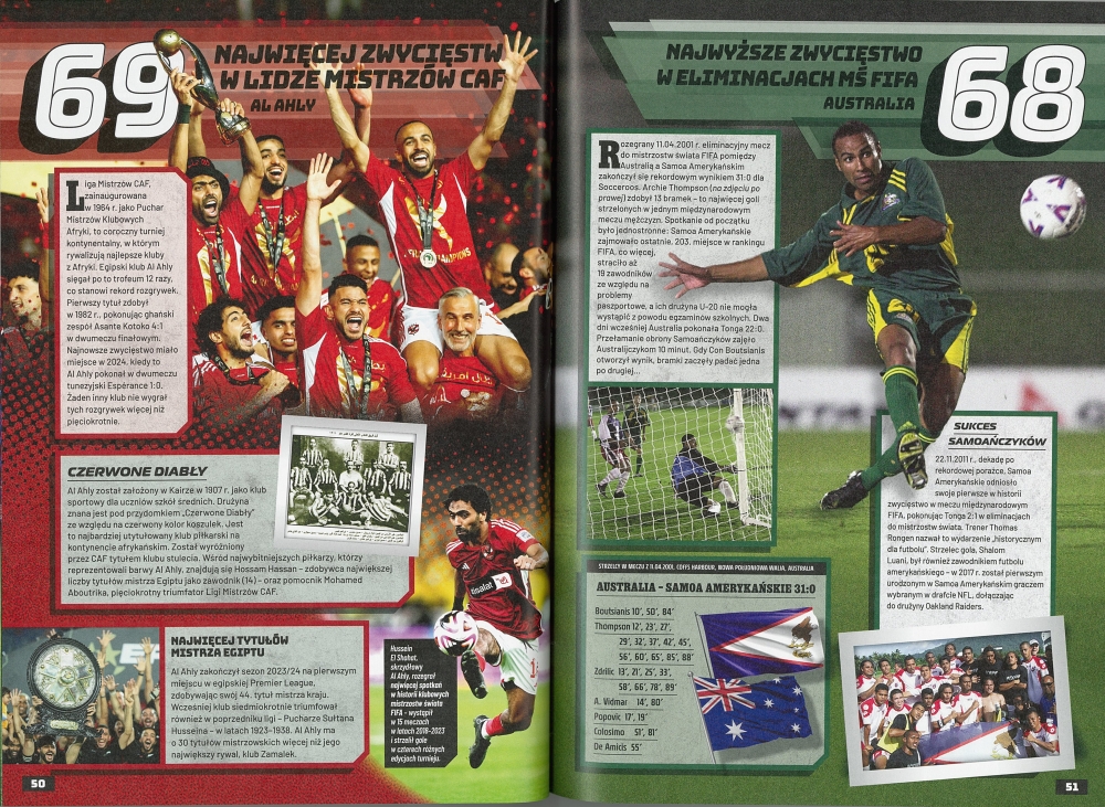 To pierwsza piłkarska edycja Księgi Rekordów. Na 192 stronach znajdziesz w niej zestawienia, wspomnienia, ciekawostki - i oczywiście długą listę „NAJ”. To idealny prezent dla miłośników sportu oraz doskonała dawka motywacji dla młodych piłkarzy i piłkarek marzących o własnych rekordach.