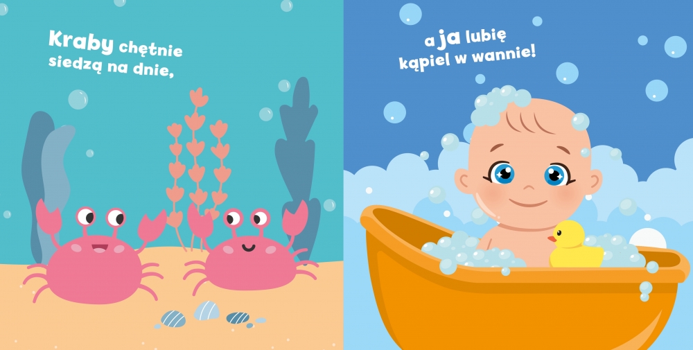 Ta mięciutka, kwadratowa książeczka może powędrować z dzieckiem do wanny zamieniając codzienną kąpiel w pełną radości i odkryć przygodę.