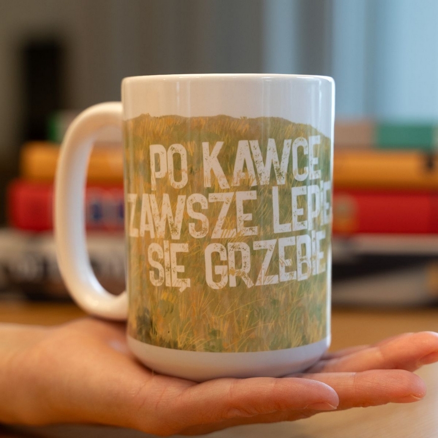 Kubek duży (440 ml) – Po kawce lepiej się grzebie (Jakub Wędrowycz) (zielony)