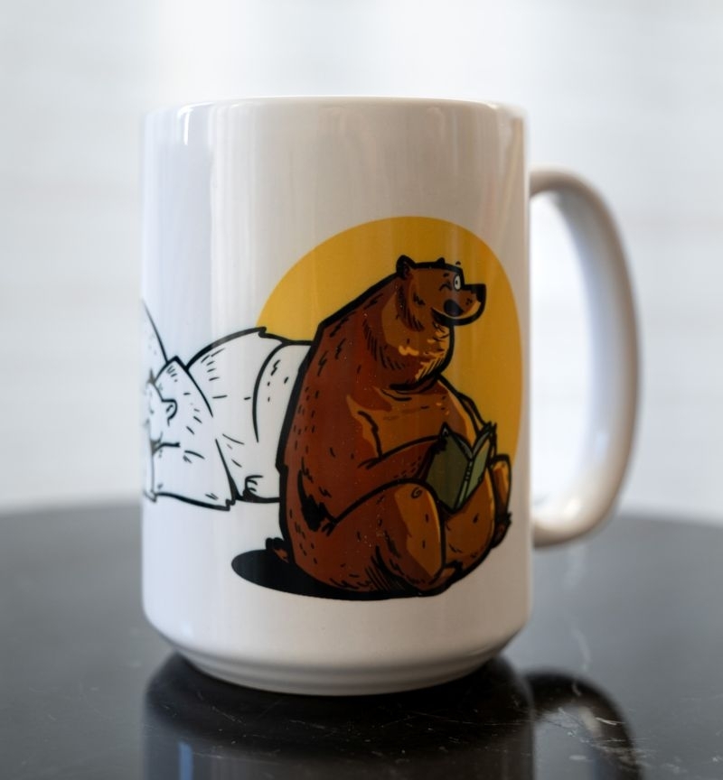 Współczesna medycyna zna różne sposoby na bezsenność, ale po co odmawiać sobie przyjemnej lektury? Lepiej zaparzyć sobie odpowiednią porcję kawy lub herbaty i wrócić do czytania! Nasz kubek z bezsennym niedźwiedziem będzie idealnym wyborem dla wszystkich nocnych marków. Sprawdzi się również w roli upominku dla tych, którzy często zarywają nocki, by przeczytać jeszcze jeden rozdział, dwa... albo raczej pięć.