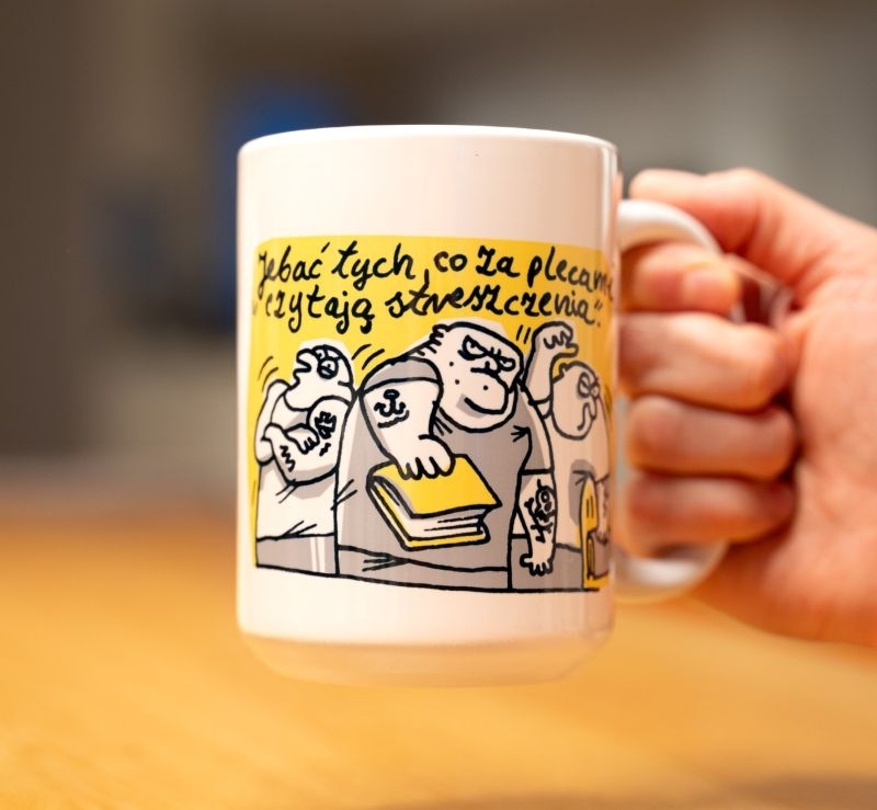 Masz już dosyć streszczeń? Wilq też! Na kubku znajdziesz jego legendarny tekst: "Jebać tych, co za plecami czytają streszczenia", okraszony charakterystyczną kreską i sarkazmem. Idealny dla tych, którzy wolą czytać pełne książki - i robić to z kubkiem dobrej kawy lub herbaty w ręku. Oficjalny kubek WILQ