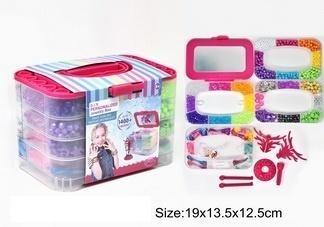 Kuferek 4 poziomy z lusterkiem, koraliki x1400, literki, wisiorki metalowe, stojaczek na bransoletki, 19x12x13,5 cm