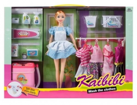 Zabawa z MEGA CREATIVE na pewno szybko się nie skończy. Zestaw daje możliwość spędzenia wspaniałego czasu podczas zabawy w prawdziwą pralnię! W zestawie znajdują się: lalka, pralka, deska do prasowania, żelazko, wiadro, kosz na pranie, zestaw detergentów do prania, wieszak stojący na ubrania oraz 4 zestawy ubrań. Produkt wykonany z plastiku, materiału oraz sztucznego włosia. Przeznaczony dla dzieci w wieku: 3+.