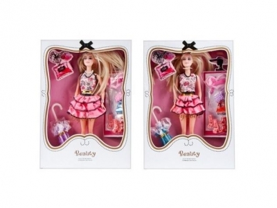 Wspaniały zestaw lala z dodatkami pozwoli Twojemu dziecku przenieść się w świat lalek wzorowanych na styl lalek Barbie. W jednym opakowaniu lalka z modnymi ubraniami oraz akcesoriami Zestaw zawiera Lalkę, parasolkę oraz 6 dodatkowych akcesoriów do stylizacji. Lalka z włosami blond w pięknej tiulowej sukience oraz różowych szpilkach. Do lalek dołączone są akcesoria. Lalka o długości 29 cm. Zestaw występuje w dwóch wzorach i kolorach. Zestaw wykonany z plastiku, materiału oraz sztucznego włosia. Przeznaczony dla dzieci w wieku 3 . Nie wymaga zasilania bateriami.