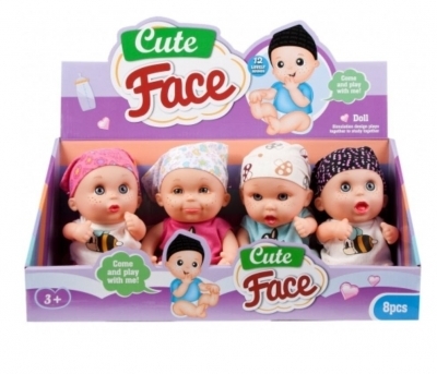 Lalka z twarzą wyrażająca emocje od zdziwienia, przez zadowolenie, po zaciekawienie.