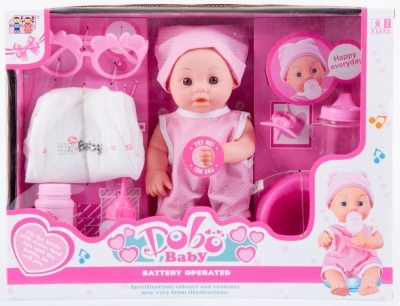 Zalety produktu: nauka odpowiedzialności za drugą osobę, nauka samodzielności, rozwijanie wyobraźni dziecka, bobas posiada efekty dźwiękowe, smoczek można wsadzić lalce do buzi. Lalka Bobas od MEGA CREATIVE to bez wątpienia świetna propozycja zabawy dla Twojej pociechy. Oprócz radości wynikającej z możliwości zajmowania się swoją Lalką jak prawdziwym dzieckiem, to także dobry pomysł na naukę samodzielności oraz odpowiedzialności za drugą osobę! Po naciśnięciu brzuszka lalka mówi. Zawartość zestawu: lalka Bobas, smoczek, pielucha, okulary, butelka na mleko, zasypka, kubek niekapek, nocnik. Wymiary/waga/baterie: wymiary produktu (dł. x wys. x gł.)[cm]: 32x10x6, wymiary opakowania (dł. x wys. x gł.)[cm]: 39x29x10 , waga produktu bez opakowania [kg]: 0,36 kg, waga produktu w opakowaniu [kg]: 0,56 kg, wymaga zasilania bateriami 3 x AG13-załączone do zestawu. Produkt przeznaczony dla dzieci w wieku: 3+.