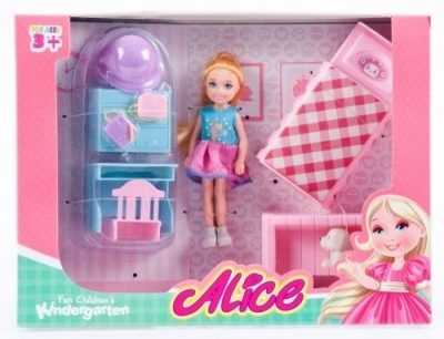 Zalety produktu: Lalka +akcesoria. Dla prawdziwej fanki lalek - nigdy dość. W myśl tej zasady warto sięgnąć po laleczkę Alice MEGA CREATIVE! Zawartość zestawu: lalka, piesek, łóżko, mała toaletka
