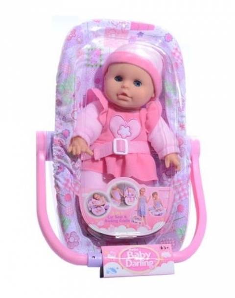 Lalka bobas w foteliku samochodowym.Wysokość lalki 27 cm.Zabawka dla dzieci powyżej lat 3.