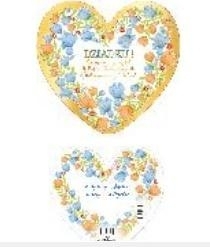 Laurka w kształcie serca, druk na grubym papierze kaszerowany, front złocony, z miejscem na życzenia