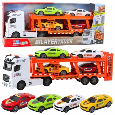 Kolor: biało-pomarańczowa laweta + 4 kolorowe autka
