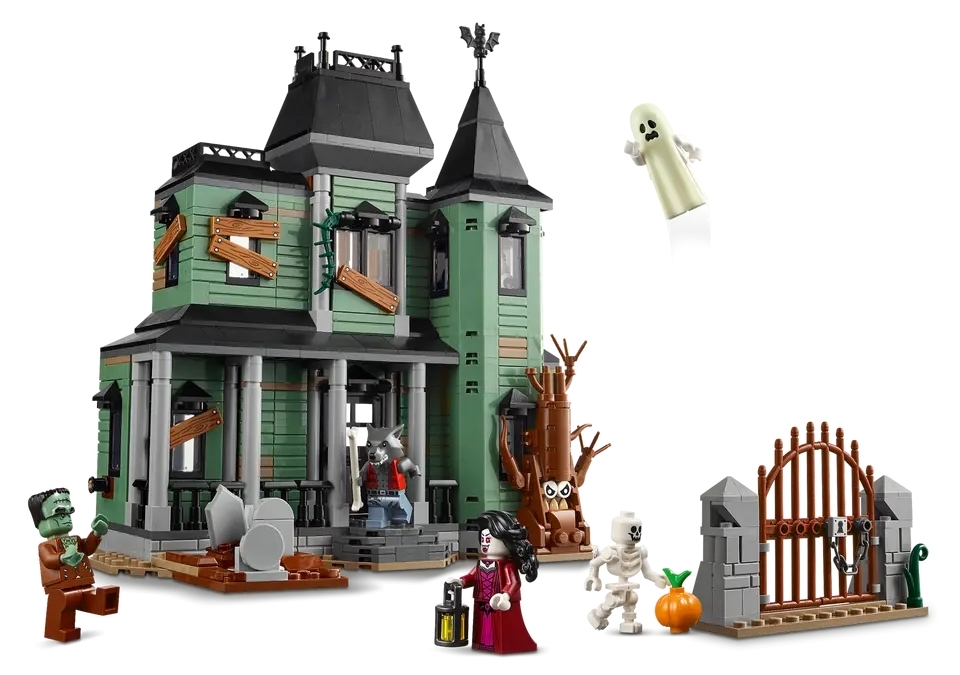 Dwupiętrowy nawiedzony dom jest pełen strasznych detali i funkcji — zawiera otwieraną bramę, cmentarz, odczepiane przerażające drzewo, organy, ducha, który pojawia się po przekręceniu koła, oraz otwierany tył, który zapewnia jeszcze więcej możliwości zabawy. Chłopcy i dziewczynki w wieku od dziewięciu lat mogą zbudować trzy różne modele z tego samego zestawu klocków: interaktywny nawiedzony dom, nawiedzony statek lub nawiedzony pociąg z peronem.