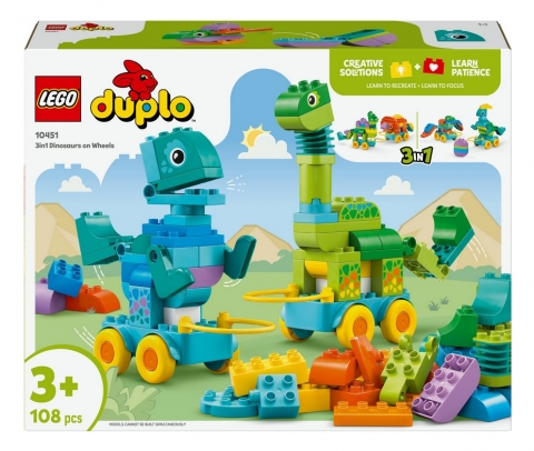 Lego, Duplo - Dinozaury na kółkach 3w1, 108 el. (10451)
