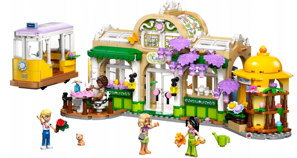 Piękne kwiaty i wyjątkowe przyjaźnie są głównym motywem zestawu LEGO® Friends Zielona kawiarnia i kwiaciarnia (42671) dla dziewczynek i chłopców od 9 lat. W zestawie znajdują się cztery minilaleczki, figurka kota, tramwaj i wiele akcesoriów, które inspirują do twórczej zabawy. To także świetny pomysł na prezent dla dzieci, które kochają kwiaty, budowanie i zabawki konstrukcyjne. Gotowy model może również posłużyć jako kolorowa dekoracja na półkę.