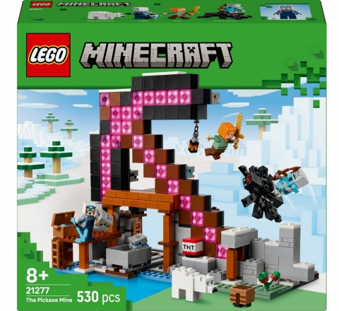 Zestaw zawiera trzy minifigurki: znaną z gier Alex, górnika i pajęczego jeźdźca. Na powierzchni kopalni znajduje się również figurka małego niedźwiedzia polarnego. Podczas zabawy dzieci wydobywają rudę, ładują ją do wagonika i transportują po torze, aby umieścić ją w skrzyni. Wózek można też napełnić TNT i wystrzelić w kierunku ściany, przebijając się na drugą stronę. A gdy dzień górniczych przygód dobiegnie końca, zabawka w kształcie kilofa LEGO Minecraft może służyć również jako fajna ozdoba do pokoju dziecięcego. Dodatkową cyfrową zabawę zapewnia aplikacja LEGO Builder, w której można powiększać i obracać modele w 3D oraz śledzić postępy.