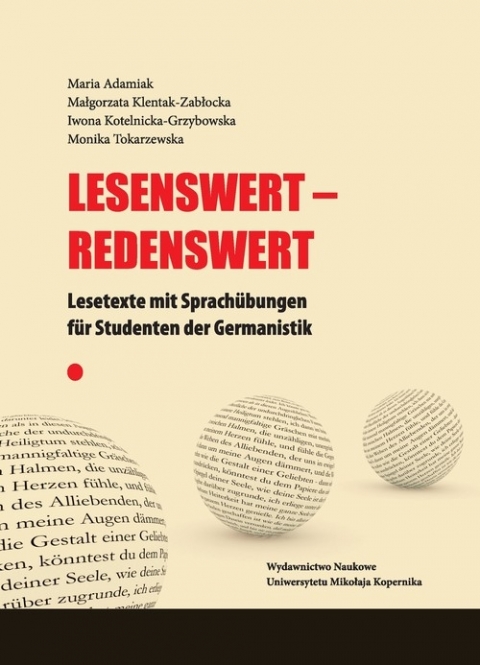 Podręcznik "Lesenswert redenswert jest zbiorem tekstów i zadań do praktycznej nauki języka niemieckiego na studiach germanistycznych. Sam tytuł wskazuje na jego zasadniczy cel: chodzi o to, by zachęcić do pracy z ambitnymi tekstami, które skłaniają do refleksji i inspirują. Ich tematyka zachowuje aktualność mimo zmieniającego się kontekstu społeczno-politycznego. Do tekstów dołączono obszerne zestawy pytań i zadań, które mają ułatwić wnikliwą i krytyczną lekturę oraz pokazać szersze tło kulturowe.