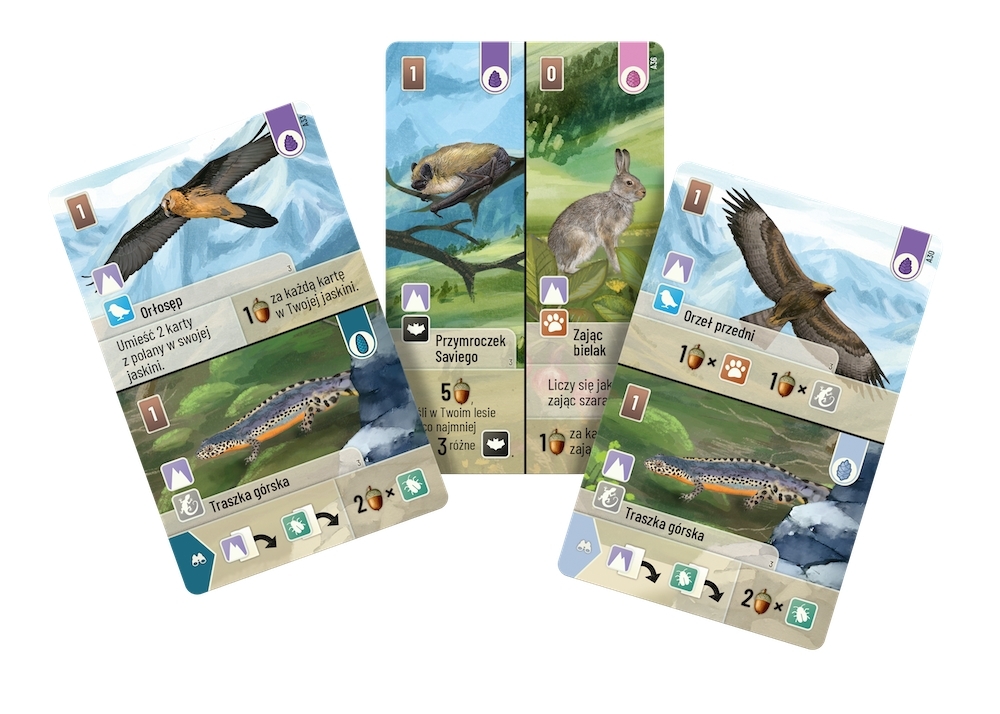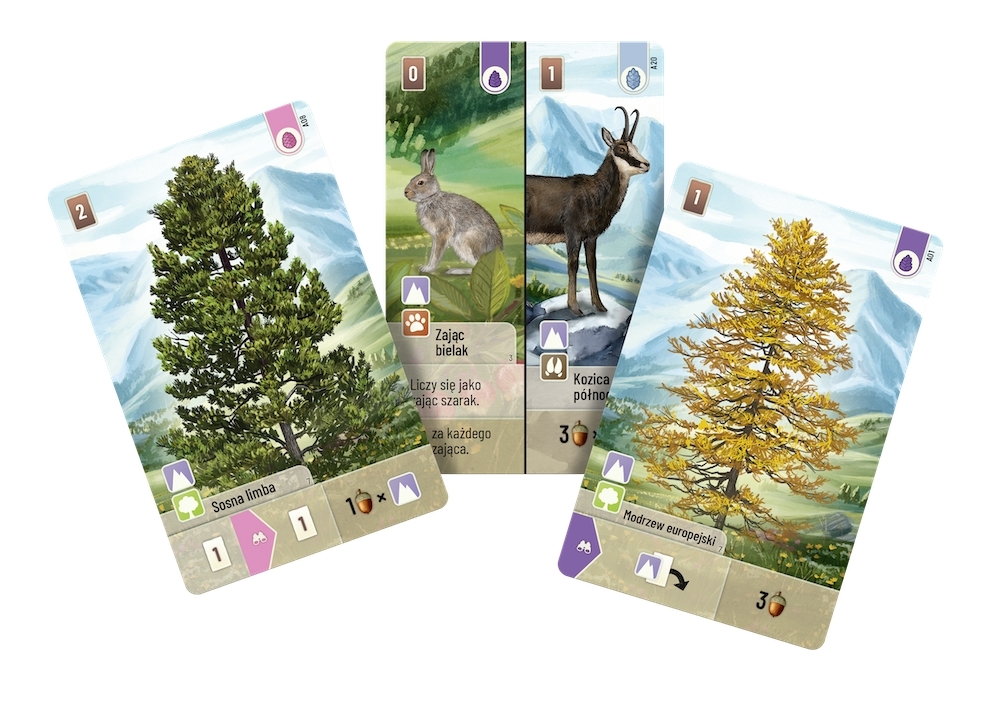 Leśne rozdanie: Alpy to rozszerzenie wprowadzające 36 zupełnie nowych, przepięknie ilustrowanych kart z alpejską fauną i florą. Znajdziesz wśród nich 2 dodatkowe gatunki drzew, nowy rodzaj motyla oraz zwierzęta, rośliny i grzyby, które urozmaicą Twoje rozgrywki i pozwolą na wypróbowanie nowych strategii.