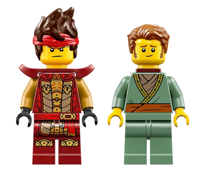 - Dwie minifigurki NINJAGO® — model zawiera również ninja Kaia z ostrzem, którego można umieścić w korpusie mecha, oraz rybaka z wiosłem w łodzi, co może zainspirować dzieci do wymyślania innych historii