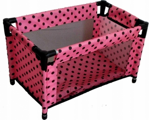 Łóżeczko-kojec dla lalek różowy w czarne groszki