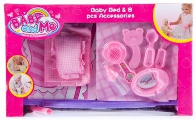 Zalety produktu: Łóżeczko dla lalek, plastikowe z akcesoriami do zabawy.