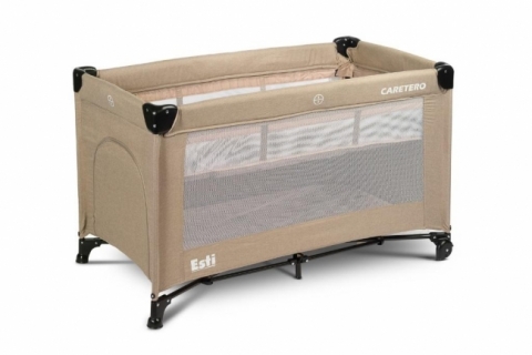Łóżeczko Esti to łóżeczko turystyczne stworzone, żeby ułatwić opiekę nad niemowlętami. Jego największą zaletą jest opuszczany bok, który przekształca łóżeczko w dostawkę i zapewnia bardziej komfortowy dostęp do dziecka. Praktyczny mechanizm składania sprawia, że złożenie lub rozłożenie zajmuje tylko chwilę. Łóżeczko posiada również kółka z blokadą ułatwiające jego przenoszenie. Boczne drzwiczki zamykane na suwak umożliwią starszym dzieciom bezpieczne wejście do łóżeczka, które może pełnić funkcję kojca. Łóżeczko jest zgodne z normą EN 716:2017-07
