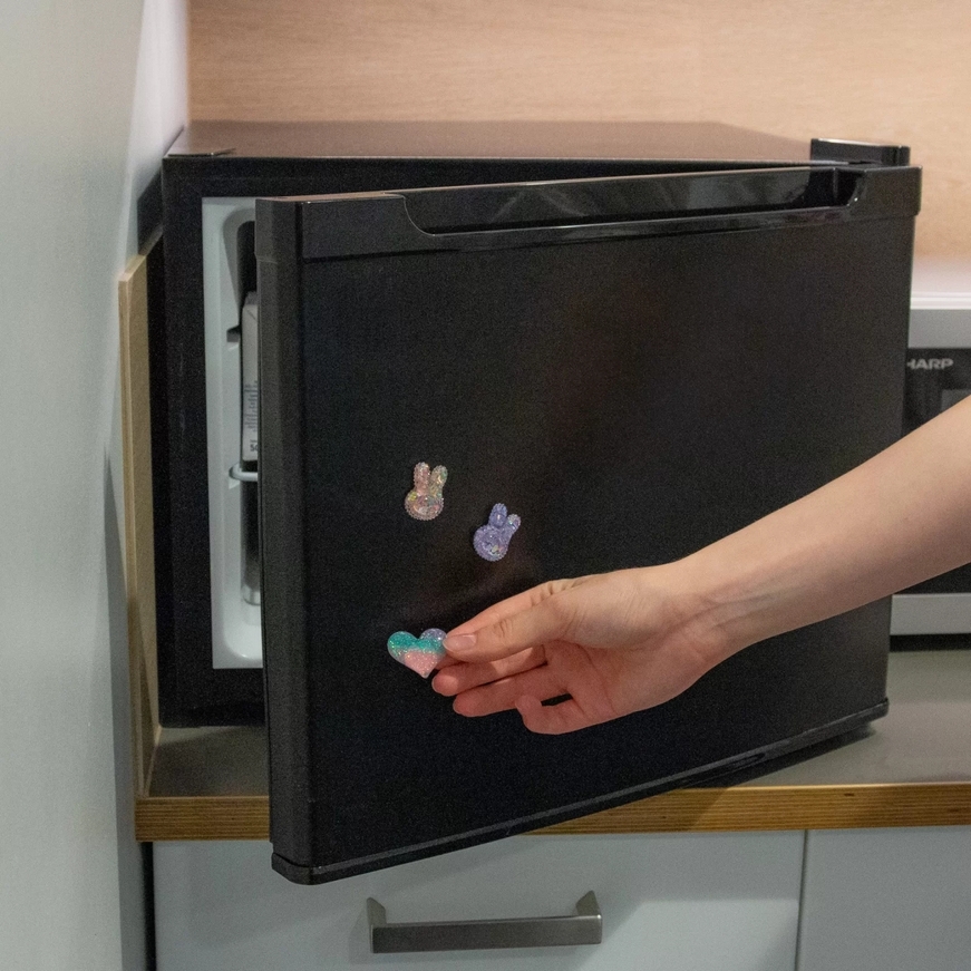 - Niezwykle słodkie i urocze dodatki w brokatowych i świecących kolorach, którymi ozdobisz lodówkę lub tablicę magnetyczną.