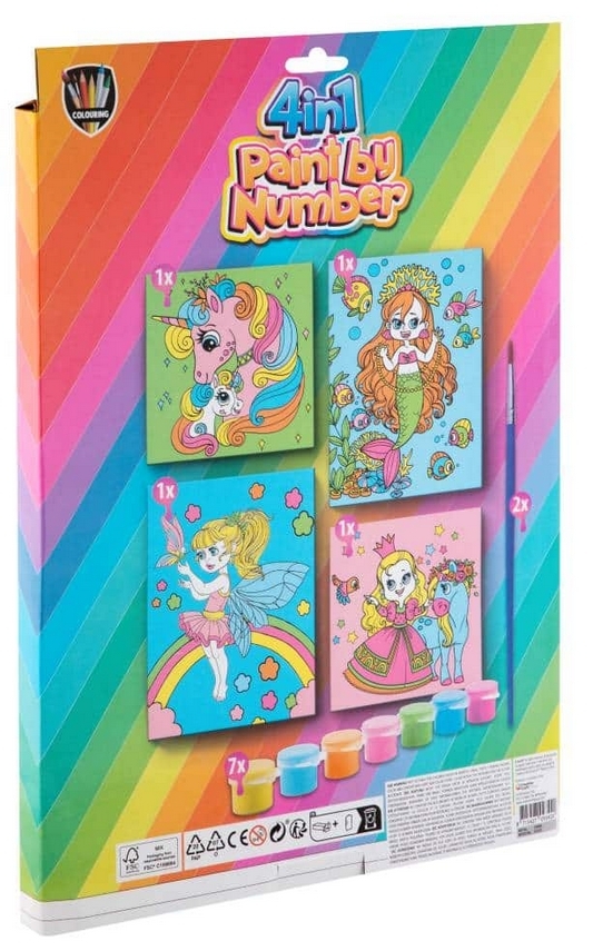 - Zestaw malowanek przedstawiających: Księżniczkę, Jednorożca,Syrenkę i Wróżkę.