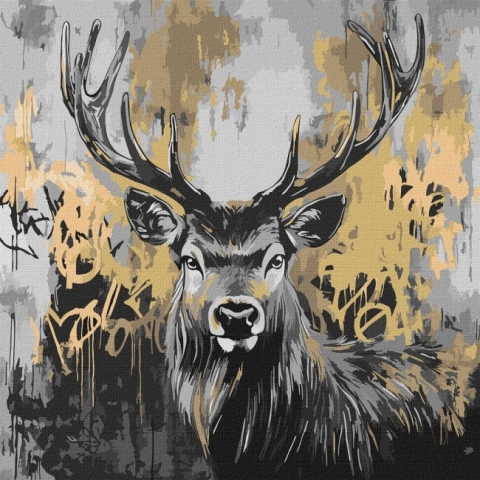 Malowanie po numerach - Złoty jeleń metal 40x40cm