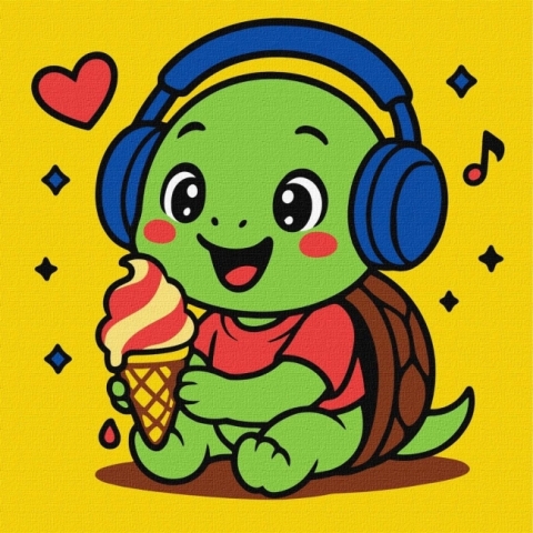 Malowanie po numerach - Żółwik je lody 25x25cm
