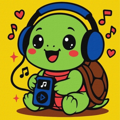 Malowanie po numerach - Żółwik słucha muzyki 25x25