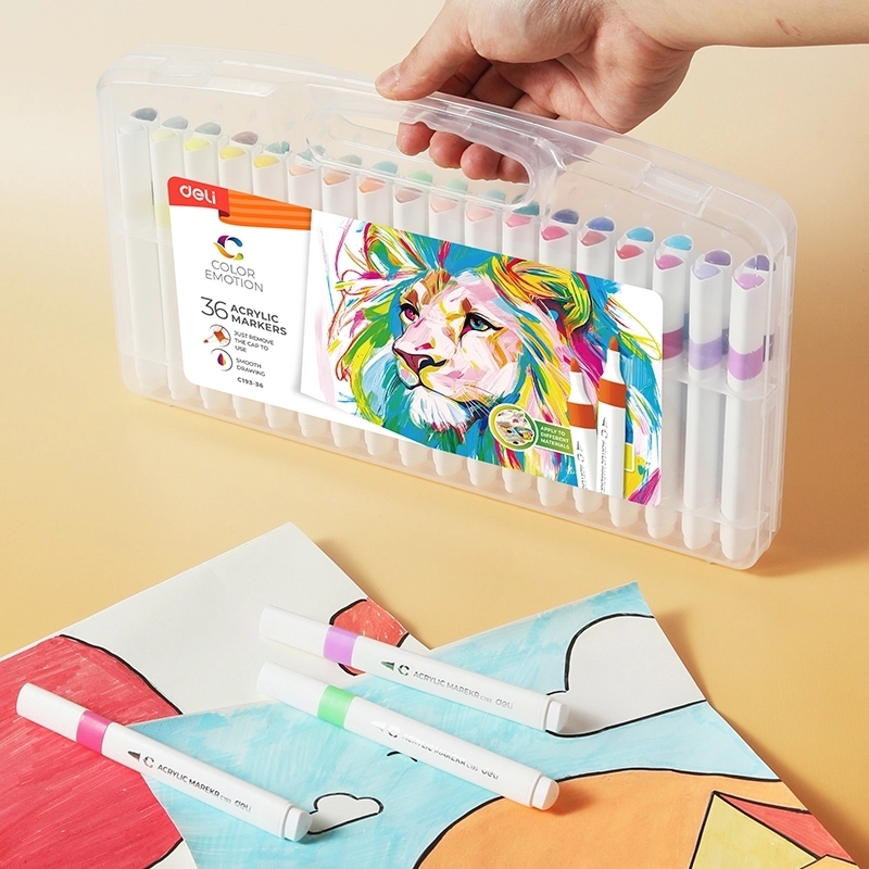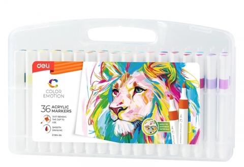Zestaw 36 akrylowych markerów DELI to idealny wybór dla artystów, hobbystów i miłośników DIY.