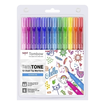 Marker TwinTone, 12 sztuk, kolory tęczy.