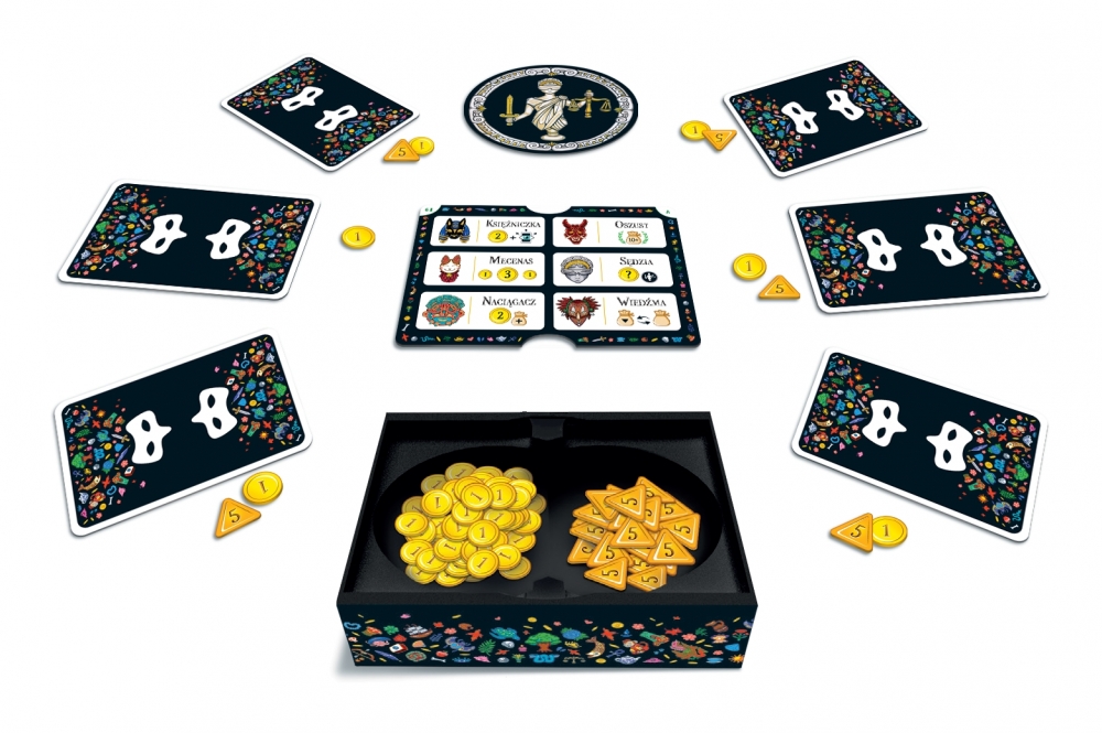 Witajcie na maskaradzie, gdzie wygląd często bywa zwodniczy, a uczestnicy nie zawsze są tymi, za których się podają! We właściwym momencie przywdziejcie odpowiednie przebranie, użyjcie związanej z nim mocy i zgromadźcie fortunę, dzięki której zwyciężycie. To zadanie proste tylko z pozoru, maski bowiem zmieniają właścicieli tak często, że nigdy nie mamy pewności, czyja twarz kryje się pod spodem!