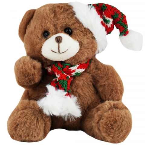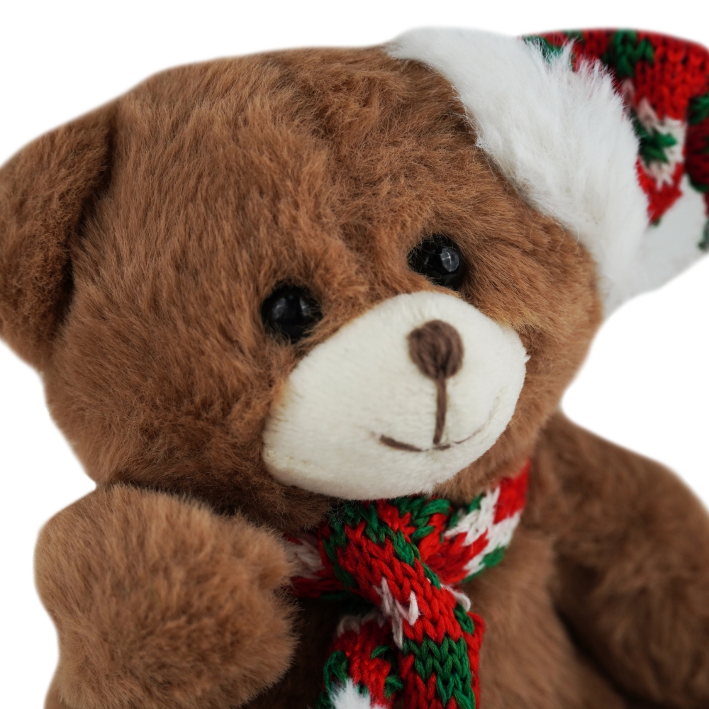 Świąteczny pluszowy miś w czapce Mikołaja, który będzie idealnym elementem wystroju w okresie Bożego Narodzenia!