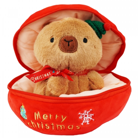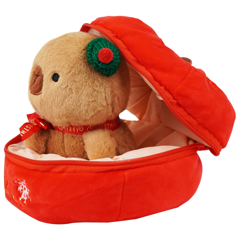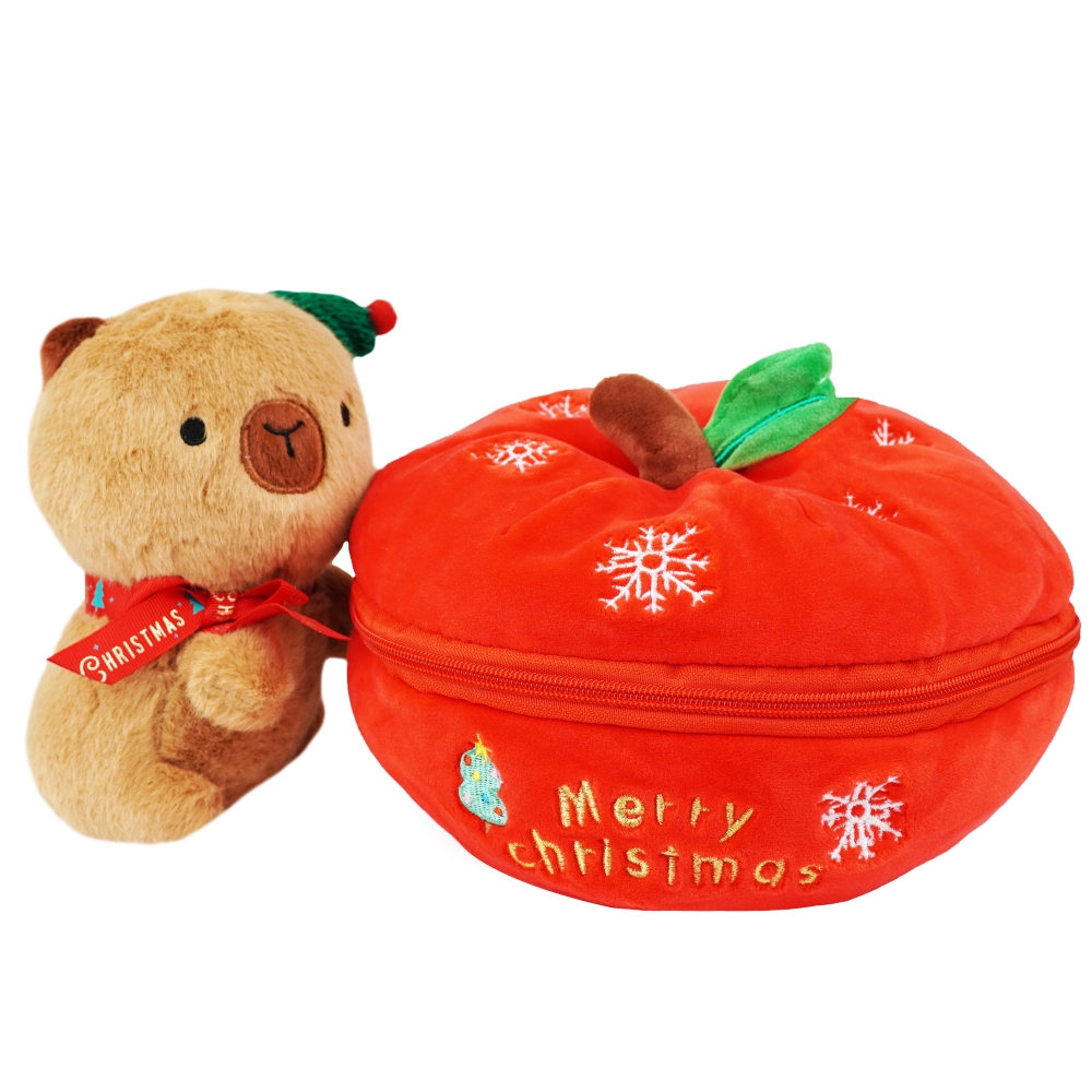 Urocza pluszowa kapibara w czerwonej choinkowej bombce-jabłku!