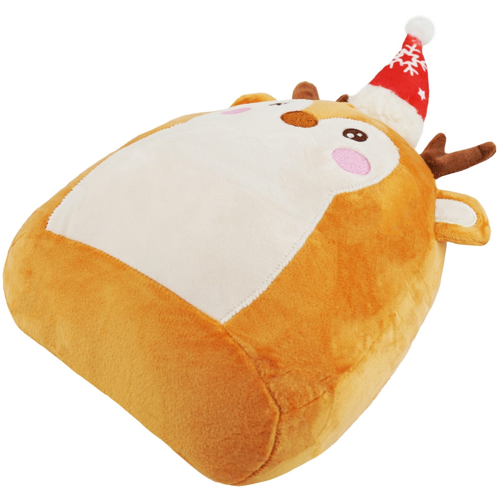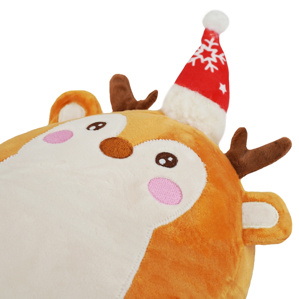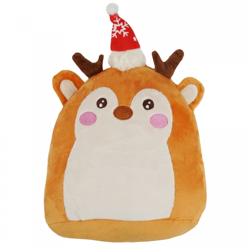 Ten pluszowy renifer wygląda, jakby naprawdę dużo zjadł - to chyba dzięki temu jest taki miękki i okrągły! Ma na sobie świąteczną czapeczkę, która sprawia, że doskonale sprawdzi się jako bożonarodzeniowa ozdoba.