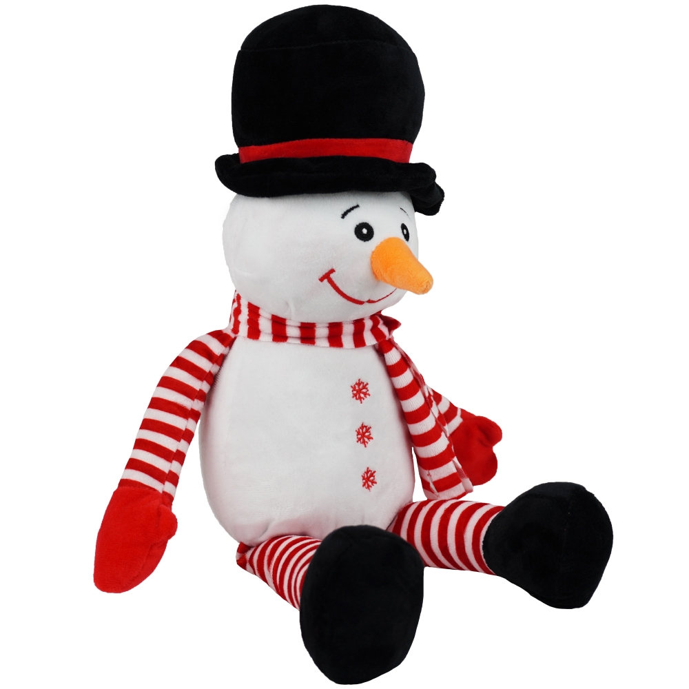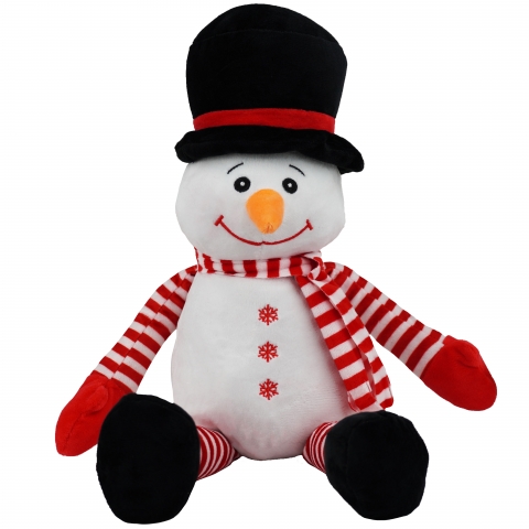 Świąteczny pluszowy bałwanek, który w swoim wielkim kapeluszu czeka na śnieg - z nadzieją, dzięki temu pojawią się jego koledzy!