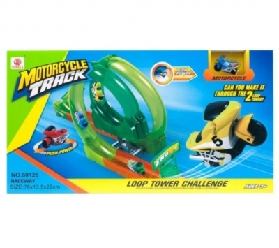 Tor do ekstremalnej jazdy. MEGA CREATIVE przedstawia coś dla prawdziwych fanów szybkiej jazdy i mocnych wrażeń! W zestawie znajduje się tor-pętla do samodzielnego montażu oraz motocykl. Tor posiada dużą pętle, przez którą motor przejeżdża z obrotem 360 stopni.
