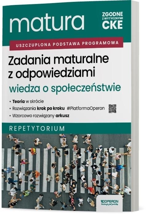 "Publikacja aktualna z wymaganiami CKE, opracowana przez organizatora największych, ogólnopolskich próbnych matur w Polsce. Jedna książka, w której znajdziesz wszystko to, co niezbędne, aby zdać maturę zwiedzy o społeczeństwie. To kompleksowe repetytorium, które wystarczy, aby przypomnieć sobie niezbędną teorię, przećwiczyć rozwiązywanie zadań egzaminacyjnych, sprawdzić odpowiedzi i przeanalizować rozwiązania oraz poznać strukturę arkusza maturalnego. Publikacja"Zadania maturalne z odpowiedziami": pozwala utrwalić wiedzę i umiejętności niezbędne na maturze z wiedzy o społeczeństwie; pozwala rozwijać techniki rozwiązywania typowych zadań egzaminacyjnych; umożliwia śledzenie postępów oraz stopnia przygotowania do matury z wiedzy o społeczeństwie; skutecznie przygotowuje do zdania egzaminu z wiedzy o społeczeństwie. Publikacja"Zadania maturalne z odpowiedziami"składa się z teorii, krótszych i dłuższych zadań maturalnych do samodzielnego rozwiązania, wzorcowo rozwiązanego arkusza maturalnego oraz zestawu krótkich odpowiedzi do zadań. Teoria z przykładami do każdego z działów tematycznych zawiera najważniejsze informacje, definicje, zależności oraz mechanizmy, przedstawione w postaci rysunków, tabel czy zestawień. Sama teoria nie wystarcza? Przeanalizuj ilustrujący ją rozwiązany przykład. Zadania maturalne do samodzielnego rozwiązania przygotowano do każdego działu w wersji zadań krótszych i dłuższych. Zadania krótsze pozwalają na bieżąco sprawdzać postępy w ich rozwiązywaniu. Jest ich tyle, aby wystarczyły na przećwiczenie różnych typów poleceń i przygotowanie się z danego materiału. Na rozwiązanie zadań dłuższych potrzebujesz więcej czasu i skupienia oraz wykorzystania nabytych umiejętności. Wzorcowo rozwiązany arkusz maturalny prezentuje dobre praktyki w rozwiązywaniu zadań z arkusza. W podpowiedziach znajdziesz wskazówki pozwalające uzyskać jak największą liczbę punktów. Dzięki zestawowi krótkich odpowiedzi do zadań zweryfikujesz, czy udało Ci się dobrze rozwiązać każde z zadań i zawrzeć w odpowiedzi wszystko, czego potrzeba, aby uzyskać maksimum punktów. Dodatkowym wsparciem w przygotowaniach do matury są również publikacje"Teoria do matury", czyli książka zwierająca pełną wiedzę podręcznikową ze wszystkich lat nauki, oraz"Arkusze maturalne", zapewniające praktyczne ćwiczenia i zapoznanie się z formułą egzaminu. I