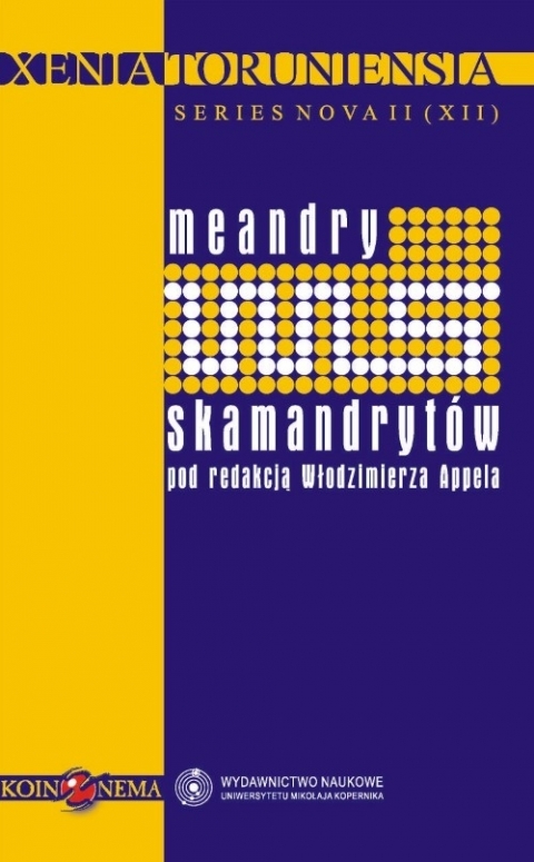 Prezentowana książka jest adresowana do szerszego kręgu odbiorców aniżeli poprzednie tomy serii Xenia Toruniensia", które kierowane były głównie do obcojęzycznego czytelnika, zainteresowanego grecko-rzymskim antykiem oraz dziejami nauk o starożytności. Tym razem bowiem tylko część opracowań dotyczy kultury klasycznej i jej recepcji, podczas gdy zdecydowana większość opublikowanych tekstów tematycznie wiąże się z egzegezą różnych innych aspektów twórczości literatów należących do poetyckiej formacji pięknej Plejady". Z formalnego punktu widzenia Meandry skamandrytów" są efektem inicjatywy podjętej przez grono pięciorga humanistów (Elżbietę Wesołowską, Tomasza Bocheńskiego, Zbigniewa Danka, Wacława Lewandowskiego, Aleksandra Madydę oraz Włodzimierza Appela), którzy zainteresowani rozmaitymi aspektami twórczości skamandrytów postanowili zorganizować poświęconą im konferencję. Niniejsza publikacja jest jej pokłosiem.