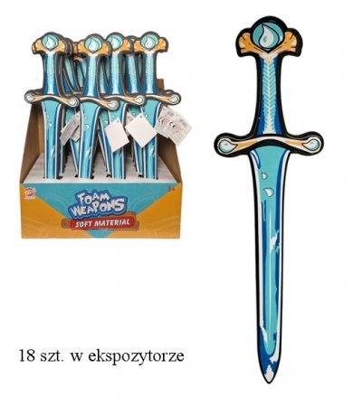 Miecz piankowy wykonany z miękkiego materiału. Lekki i bezpieczny w użytkowaniu, idealny do zabawy w rycerzy. Zabawka przeznaczona dla dzieci od lat 3. Podane wymiary są wymiarami miecza.