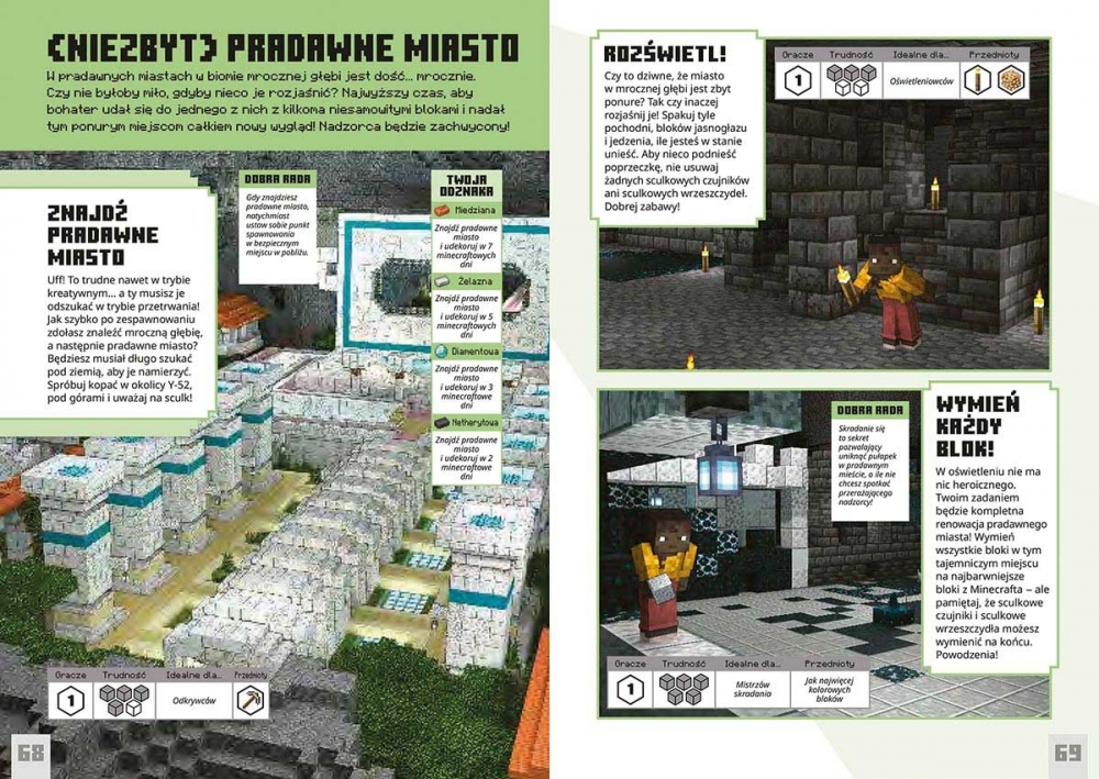 Każde zadanie rozwija spryt, refleks, logiczne myślenie i kreatywność — czyli wszystko to, co kochają gracze Minecrafta. Dzięki praktycznym poradom i wskazówkom prosto od ekspertów każdy gracz znajdzie tu coś dla siebie, niezależnie od poziomu zaawansowania. Złap miecz, zbierz odwagę i wyrusz na przygodę, która sprawdzi Cię jak nigdy dotąd.