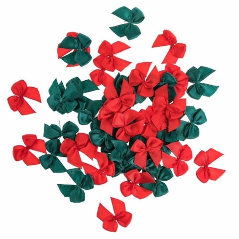 Mini kokardki satynowe czerwone, zielone BN 50szt