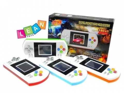 NOWOŚĆ KONSOLA DO GIER 180 W 1 !! Wspaniała konsola - gra zaspokoi gusta nawet najwybredniejszego miłośnika gier komputerowych. Posiada fabrycznie wbudowane ok. 180 gier. Konsola posiada oryginalny niepowtarzalny wygląd, przejrzysty wyświetlacz LCD prezentuje wyraźny obraz. Doskonałe rozmieszczenie przycisków pozwala na pełną kontrolę podczas zabawy. Dzięki wbudowanemu głośniczkowi konsola zapewni rewelacyjne efekty audio.